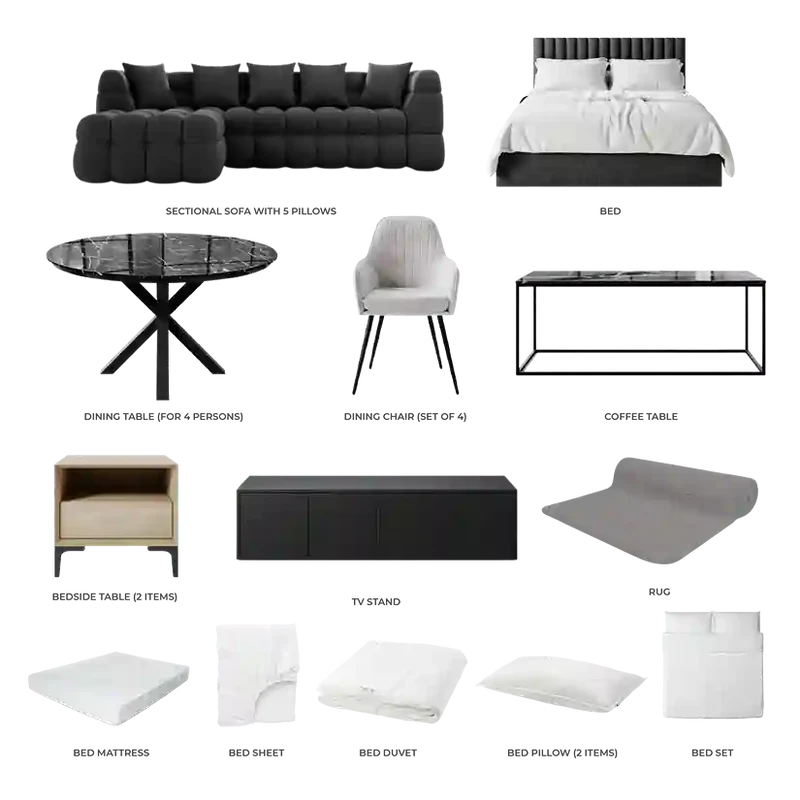 The bedroom is designed as a sanctuary of calm, where muted palettes, luxurious finishes, and marble-inspired details create an atmosphere of peace and sophistication—perfect for restful nights and elegant living.