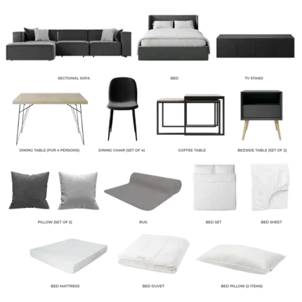 The bedroom is designed as a sanctuary of calm, where muted palettes, luxurious finishes, and marble-inspired details create an atmosphere of peace and sophistication—perfect for restful nights and elegant living.